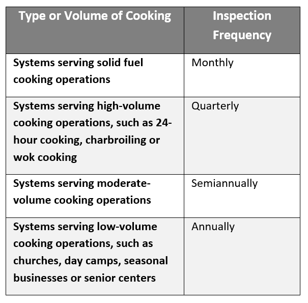 *TABLE 8-3.1 EXHAUST CLEANING INSPECTION SCHEDULE